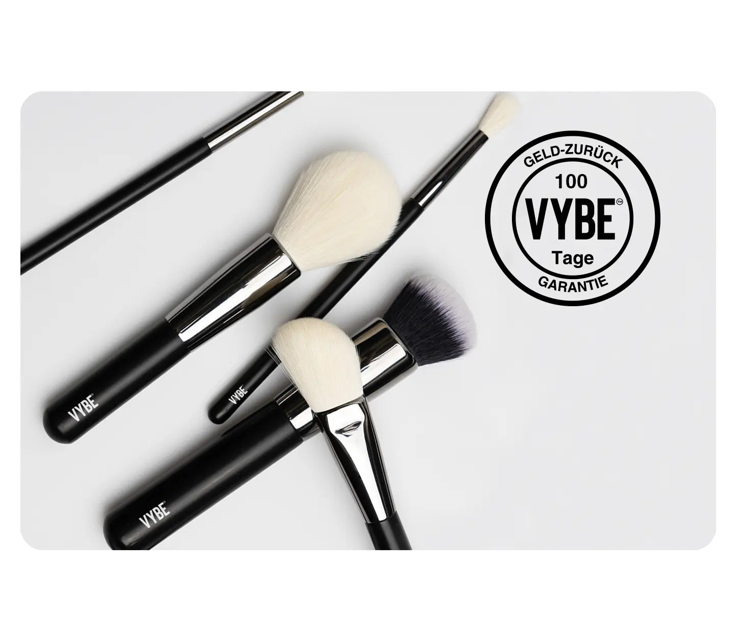 Teste die VYBE™-Pinsel noch heute mit unserer 100 Tage Garantie risikofrei und erlebe den Unterschied. Deine Haut wird es dir danken!