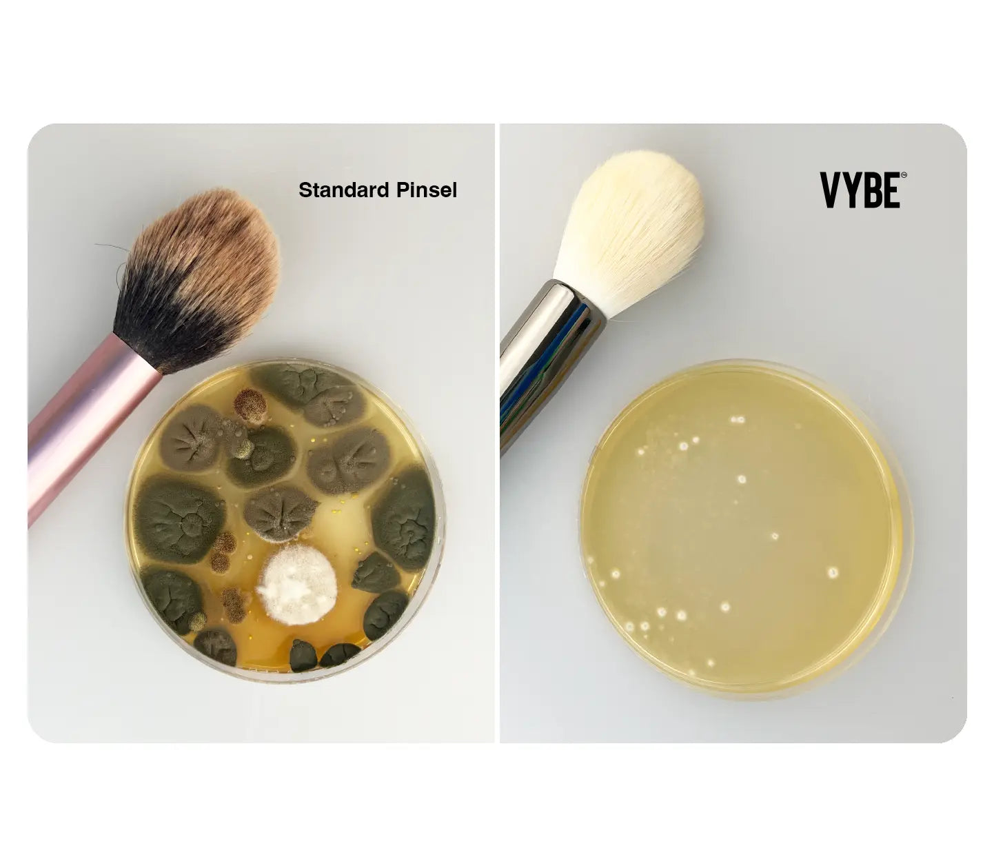 Auch wenn du deine Pinsel wäschst: durch Produktrückstände und Bakterien in Luftpartikeln bleiben sie trotzdem verkeimt.